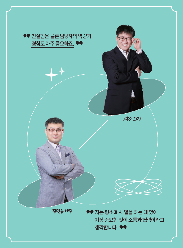 안녕하세요. 남서울본부 디지털영업센터에서 근무 하는 윤홍준입니다. 제 주변 동료들 모두 한국전력공사의 발전과 고객 만족을 위해 열심히 노력하고 있는데요. 운이 좋았는지 제가 지난해 우수업무 사례 대상자로 선정되었다고 해서 아직도 얼떨떨한 상태 입니다. 이번 기회를 통해 원활한 커뮤니케이션의 중요성을 다시 한번 느끼게 되었네요. 장민종 차장님도 소통을 특히 중요하게 여기신다고요?