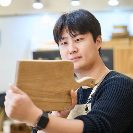도마 만들기 체험을 통해 평소 접하기 어려운 목공 작업을 직접 경험할 수 있어 색다른 시간이었습니다. 사포질과 샌딩 과정을 거치며 거칠었던 나무 표면을 부드럽게 다듬고, 버닝펜으로 이름을 새기고 오일을 발라 세상에 하나뿐인 도마를 만들었습니다. 단순해 보였던 도마 하나도 여러 작업과 정성을 거쳐 완성된다는 것을 직접 느낄 수 있는 시간이었습니다. 동료들과 함께 이야기를 나누며 즐겁게 체험했던 시간이 큰 추억으로 남을 것 같습니다. 앞으로도 이런 체험을 통해 새로운 경험을 쌓고 서로 소통할 수 있는 기회가 계속 있었으면 좋겠습니다.