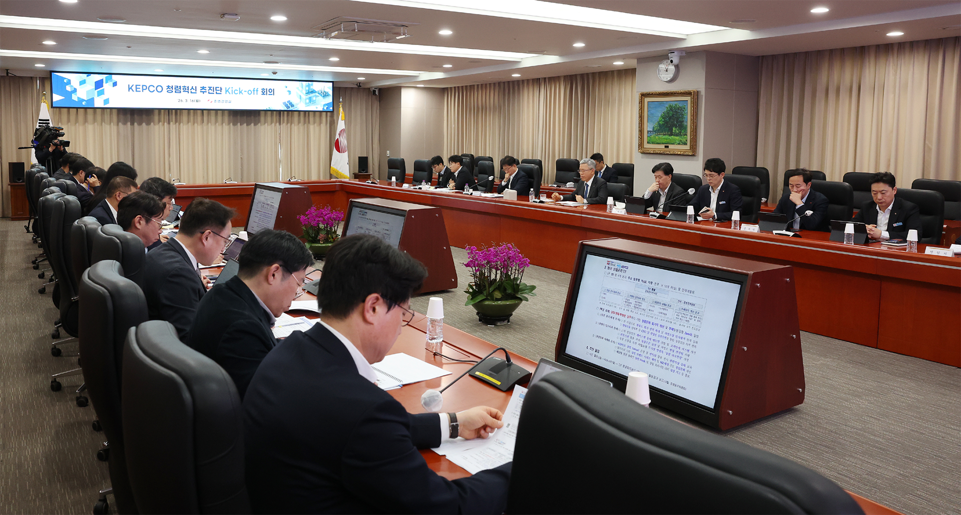 이러한 혁신의 동력을 실질적인 성과로 연결하고자, 김동철 사장이 직접 주관하는 ‘청렴혁신추진단’을 발족하고 전격 가동에 나섰다. 청렴혁신추진단은 경영진을 비롯하여 법률, 경제, 학계의 외부 전문가들로 구성되어 정책 의결의 나침반 역할을 하는 청렴윤리위원회와 본사 처(실)을 중심으로 과제를 추진하는 혁신의 엔진 역할을 하는 본사 청렴윤리 TF, 현장이행으로서 혁신의 종착지인 사업소 청렴윤리 TF로 구성된다. 청렴혁신추진단은 3월 16일 킥오프 회의를 시작으로 특단 대책의 실효성을 끝까지 담보하는 혁신의 컨트롤 타워가 되어, 현재 전사적 역량을 결집하며 변화의 물길을 터가고 있다.